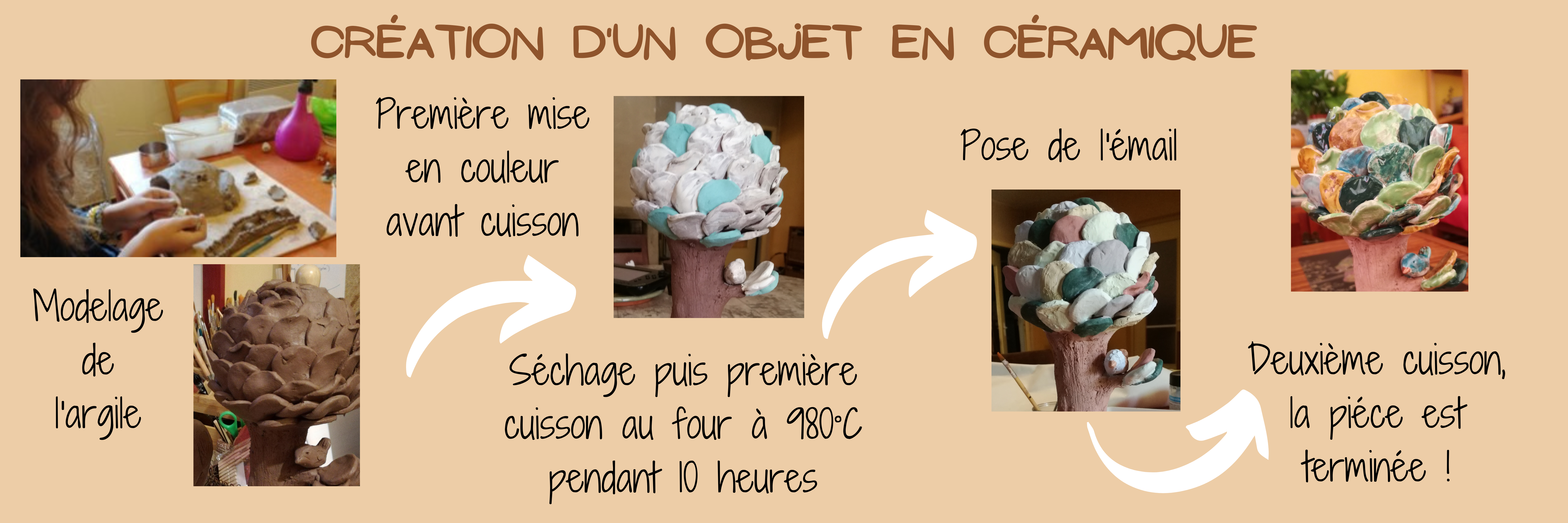 Ce tarif comprend la terre, les émaux, le matériel à disposition ainsi que les cuissons.