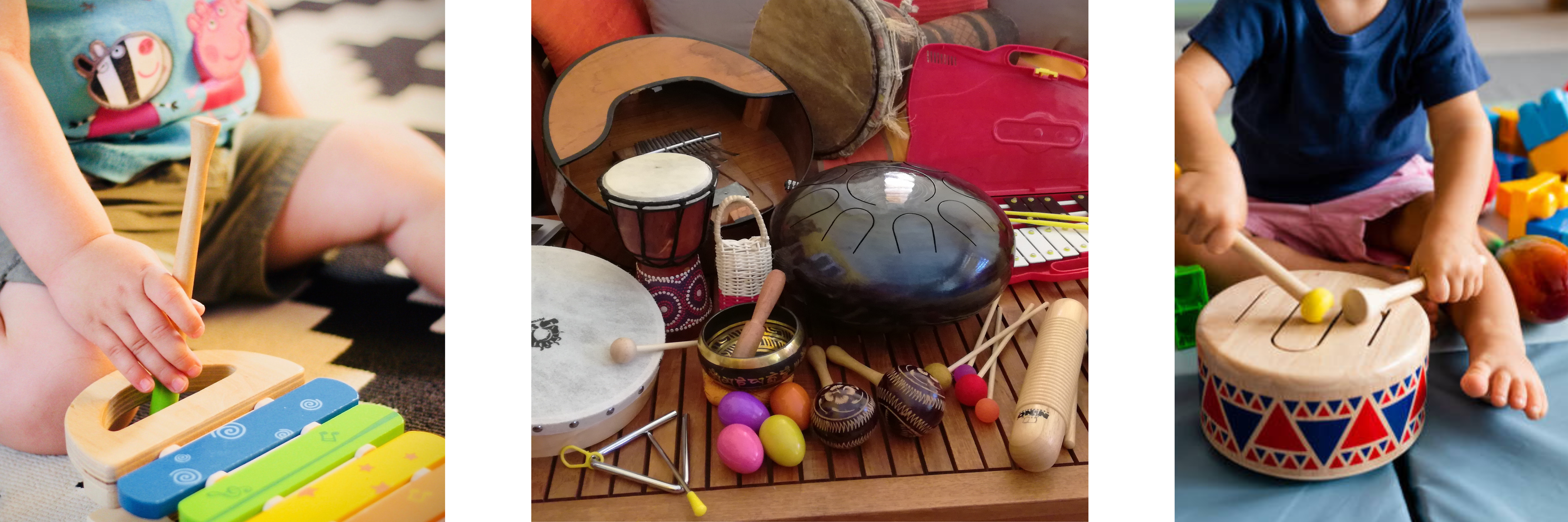 Pour les enfants de 2 à 6/8 ans , je propose un éveil à la musique : Découverte des sons, des instruments, du rythme, jeux de percussions corporelles et instrumentales, souvent accompagnés d’une histoire où se mêlent chansons et bruitages pour une approche très ludique.